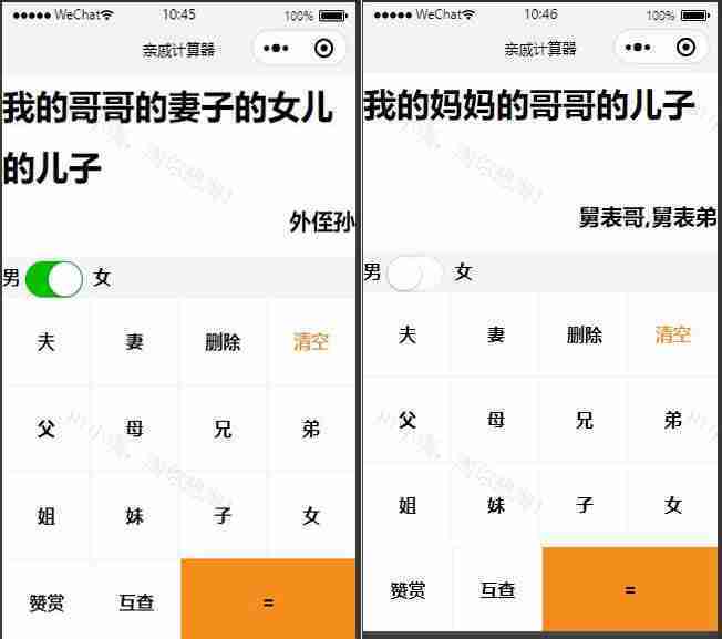 亲戚关系计算器微信小程序源码是一款为避免遇到亲戚却不知道该怎么称呼时遇到的尴尬情况而开发的