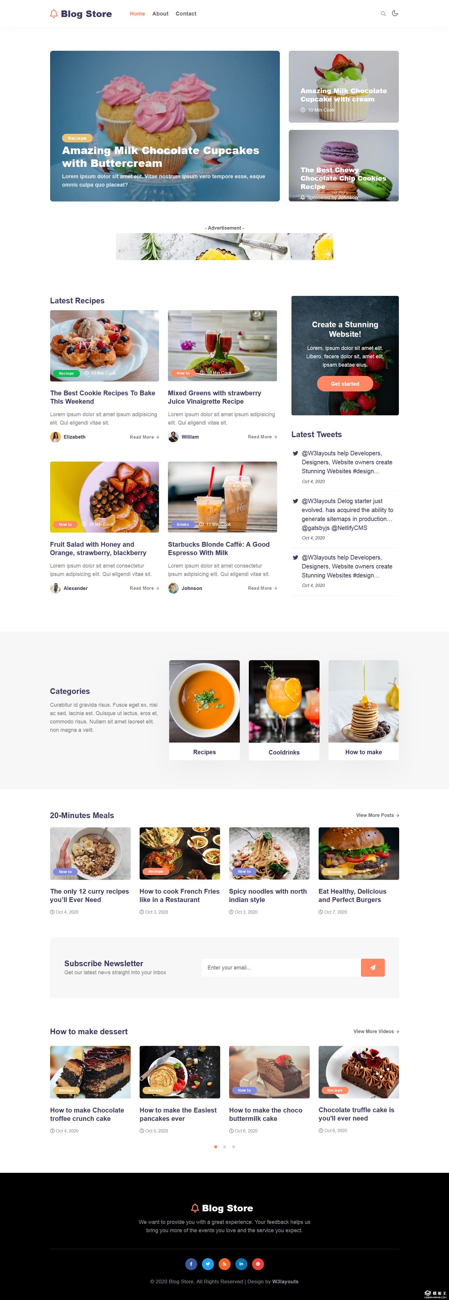 美食博客食谱推荐网页模板。