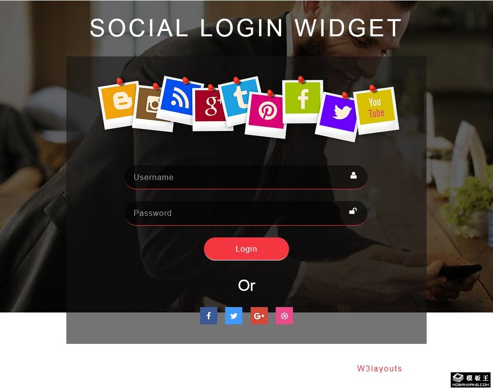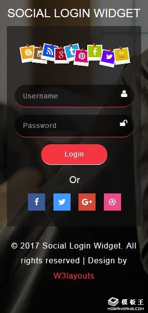 社交登录表单响应式网页模板。