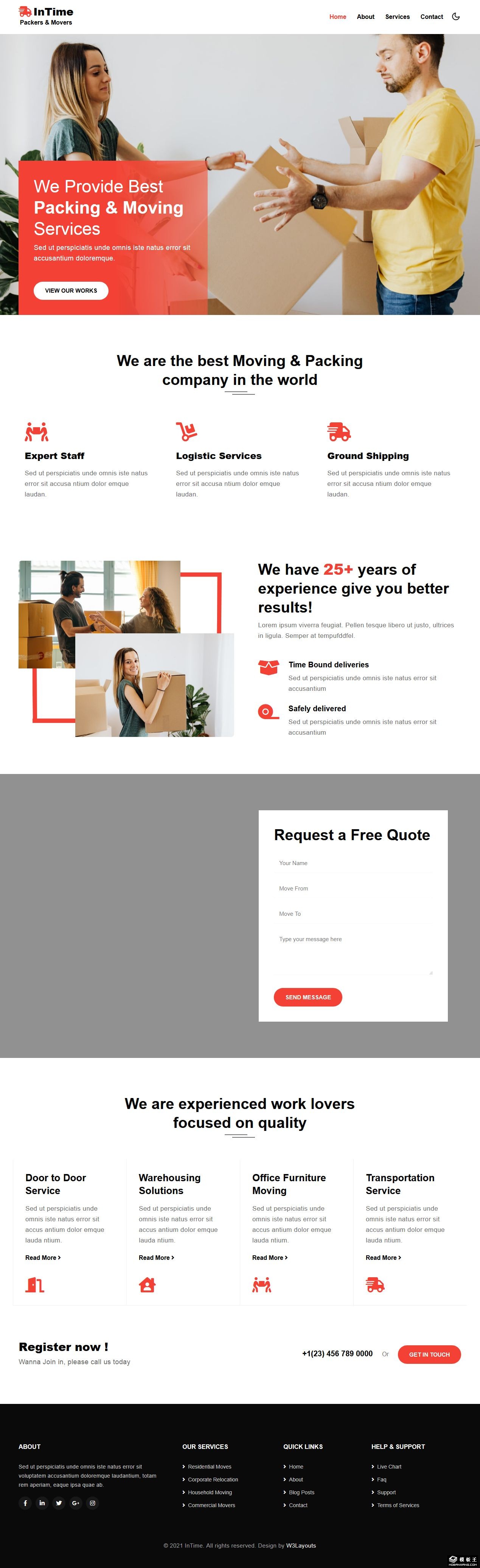 包装搬运搬家公司响应式网页模板。