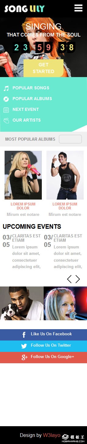 演唱会预告倒计时响应式网页模板。