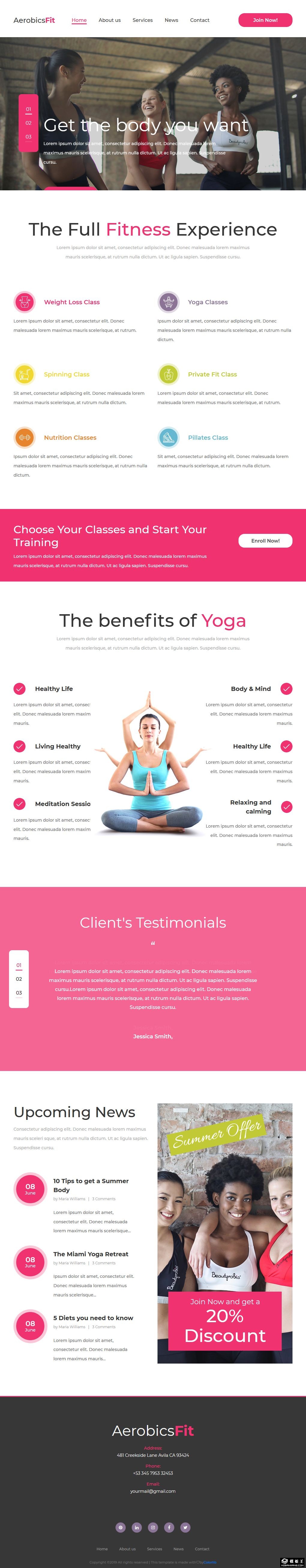 有氧塑形健身运动响应式网站模板。
