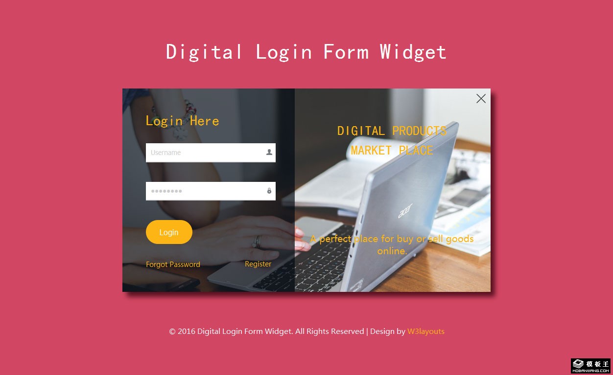 数字用户登录响应式网页模板。