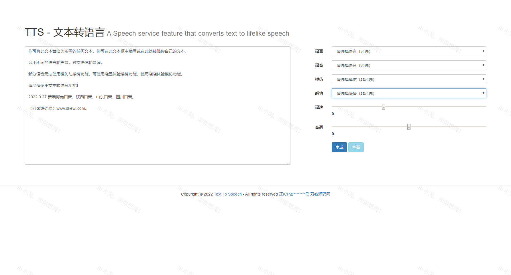 最新微软语音合成网页版源码,影视解说配音网页版,仅几个文件写成的微软语音合成接口,调用的是官方api,亲测合成很快,大家总听到的短视频电影解说与搞笑短视频,都是微软配音员,可以说是市面上语音合成中最像真人的了。