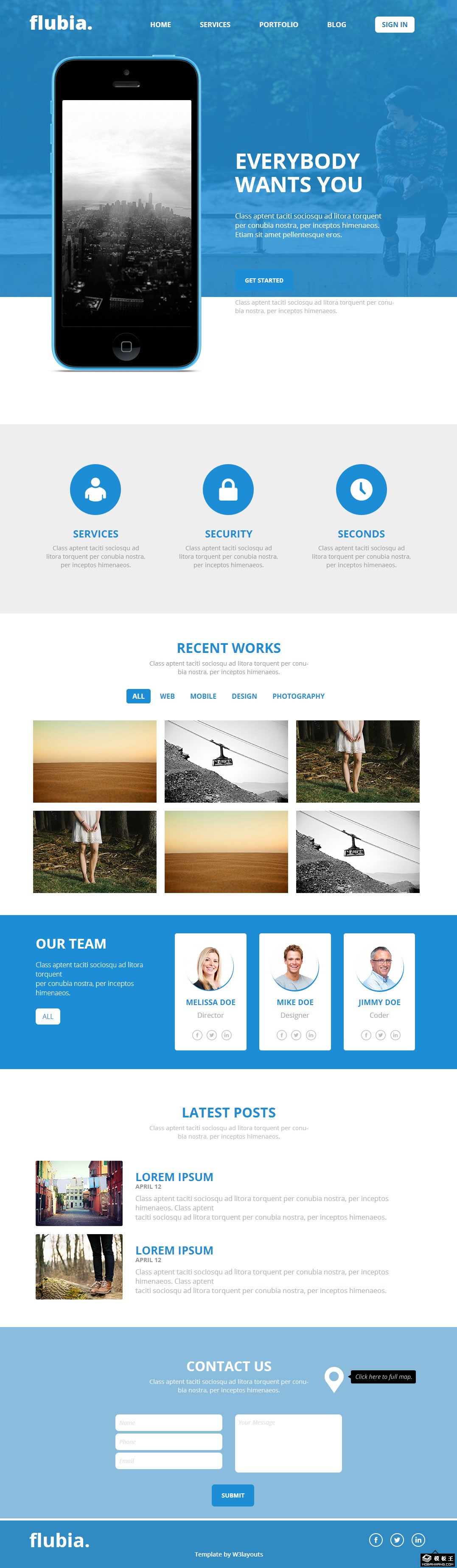 蓝色APP产品开发响应式网页模板。