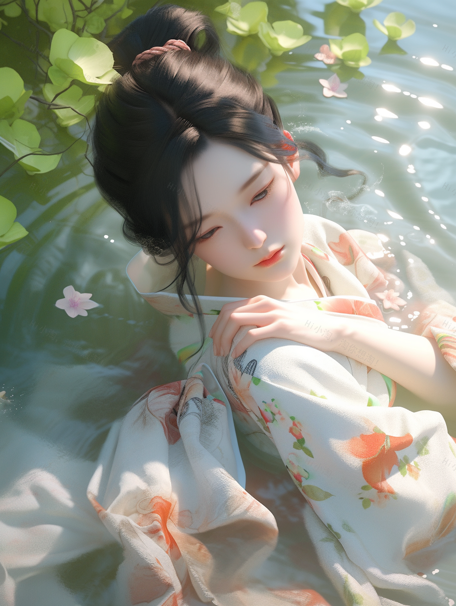 女孩在湖中游泳手机壁纸图片下载