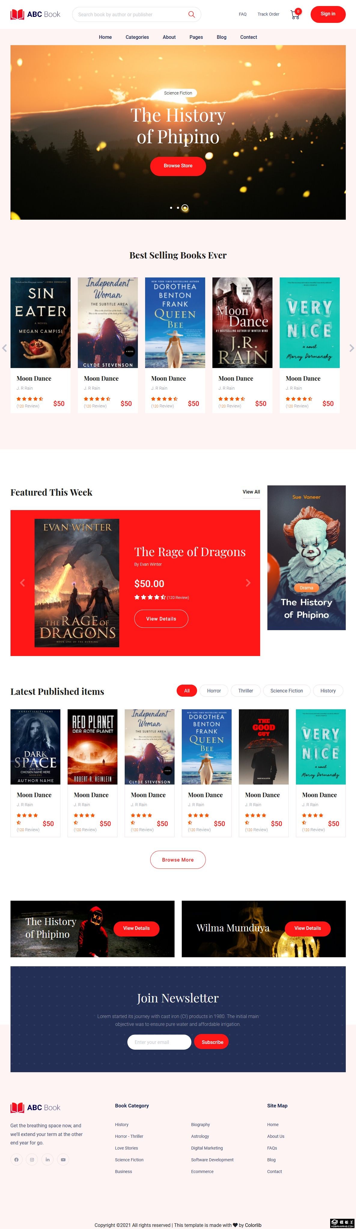 书店在线展示响应式网页模板。
