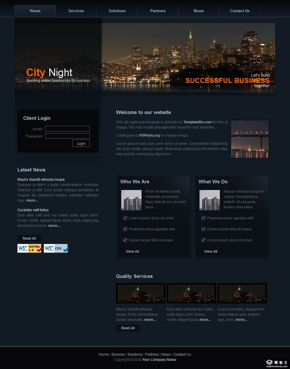 城市之夜信息黑色网页模板。