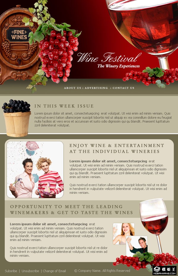 葡萄酒节EDM信息网页模板。