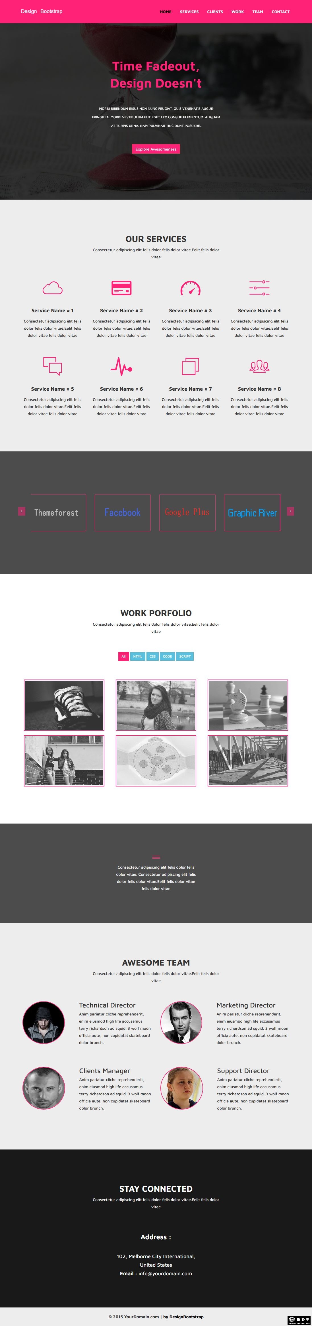 粉红简约服务项目响应式网页模板。