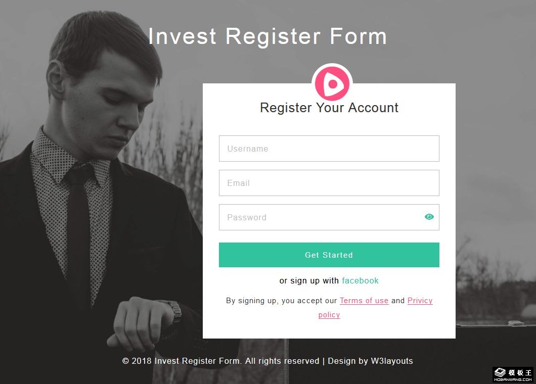 投资登记表单响应式网页模板。