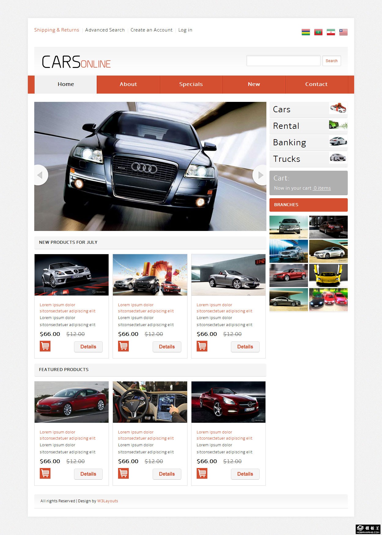 汽车出租服务网页模板。