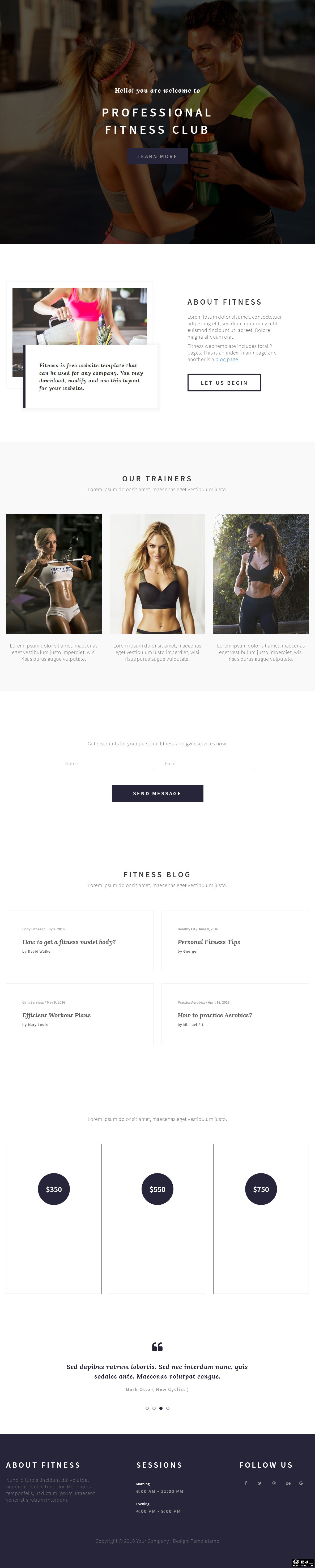 专业健身课程响应式网页模板。