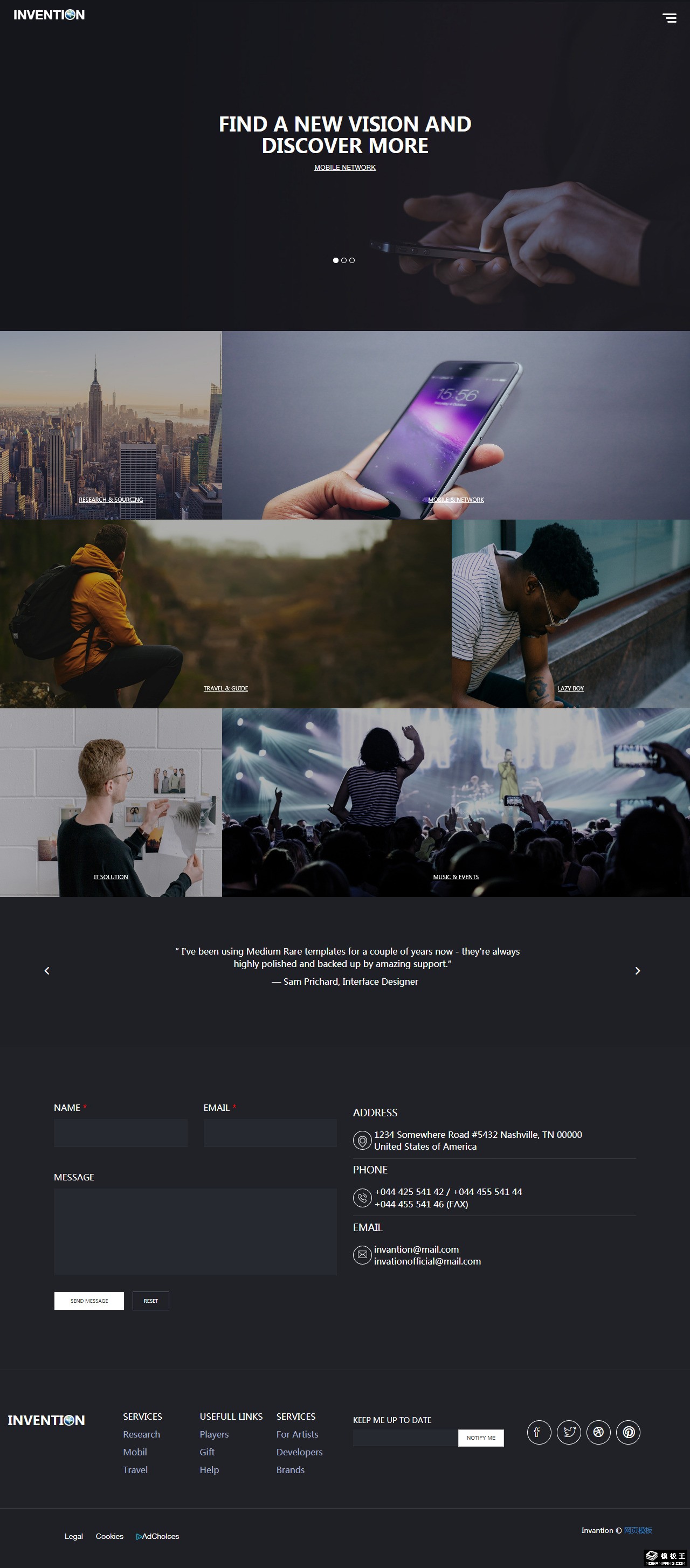 视觉创意暗黑新发现网页模板。