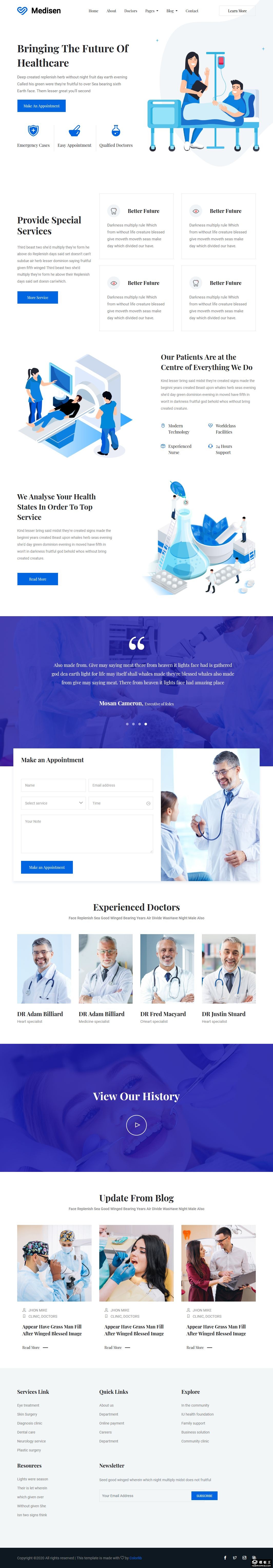 医疗保健展示响应式网页模板。