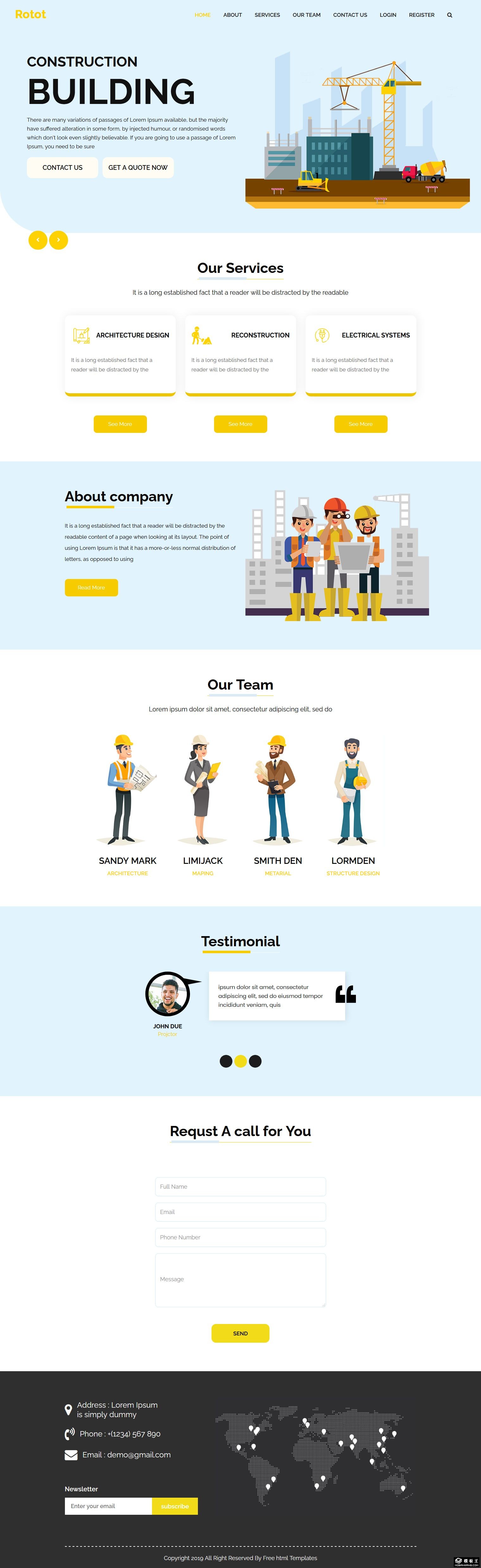 工程建设卡通形象网页模板。
