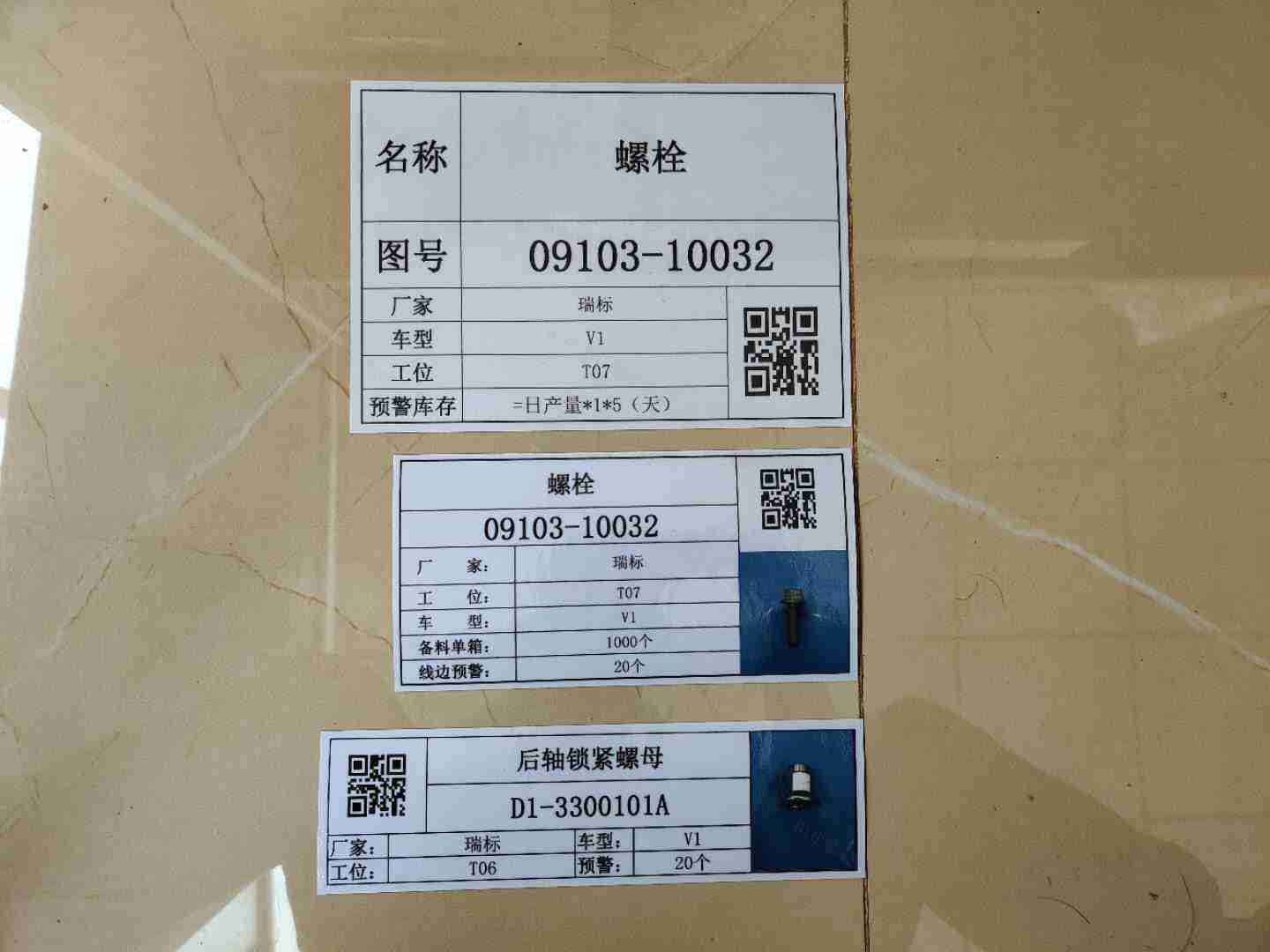 自带的标示模板样式3:一张A4纸可以打印4张这样的标示,一次可打印32张标示;适合贴在胶箱容器上或纸箱、料架上