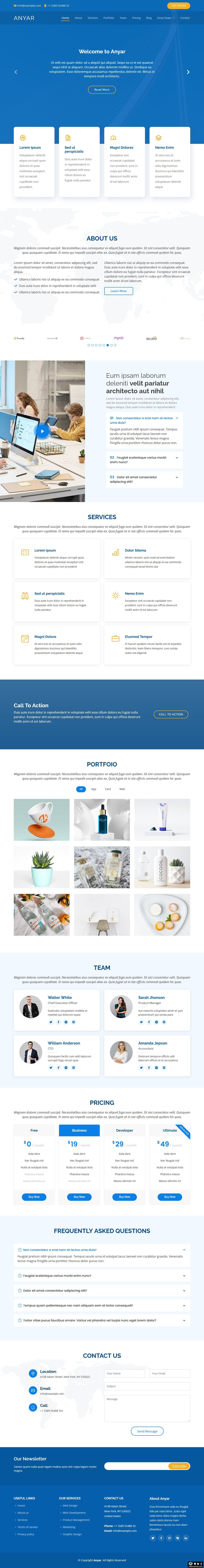 蓝色商务业务展示响应式网页模板。