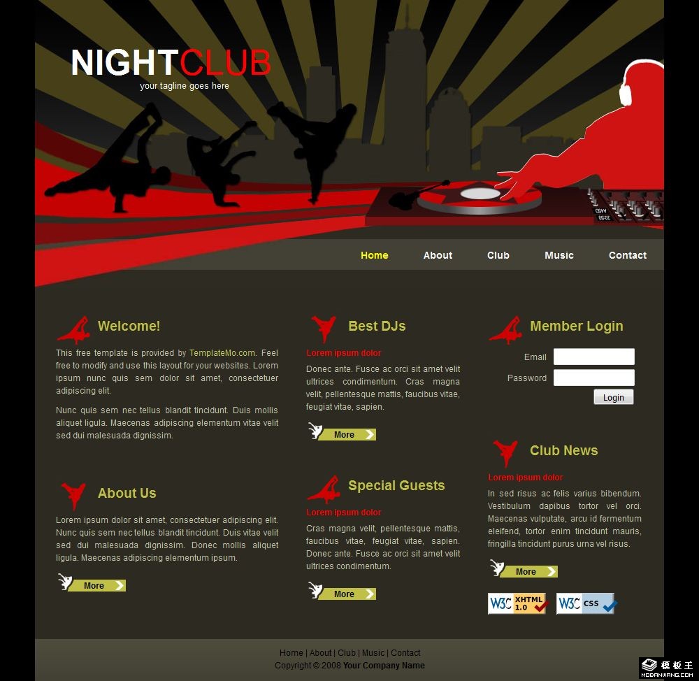 夜场俱乐部网页模板。