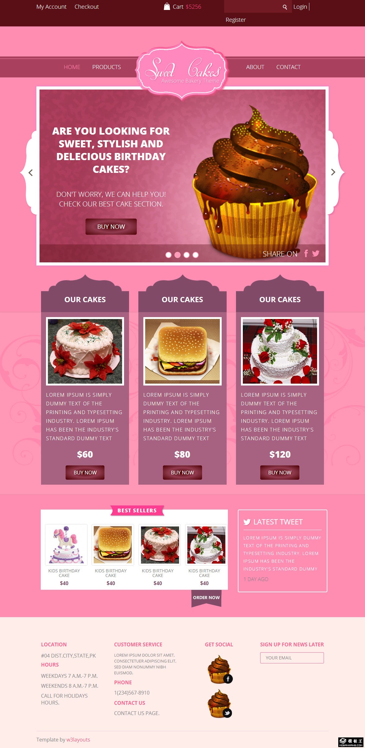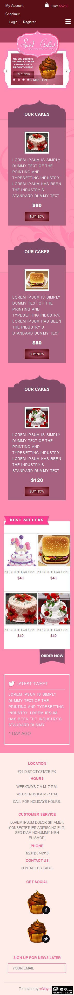 粉红色美味蛋糕品牌响应式网页模板。