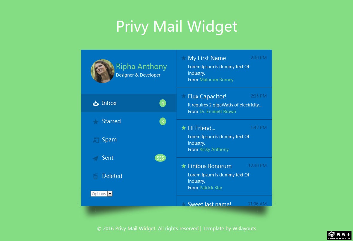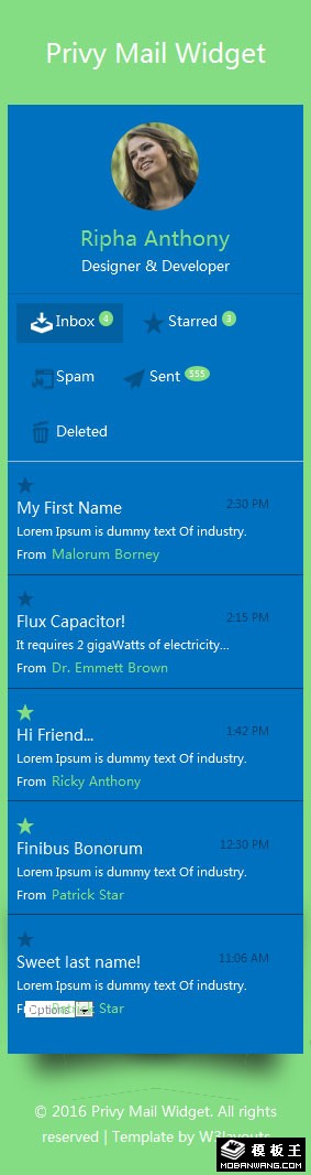 个人邮箱组件响应式网页模板。