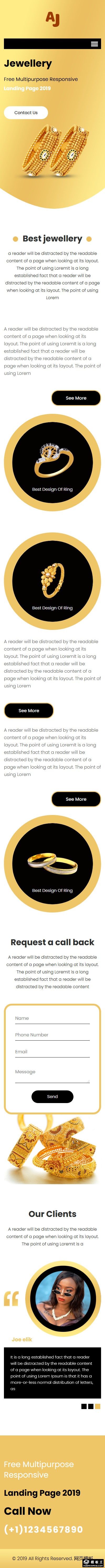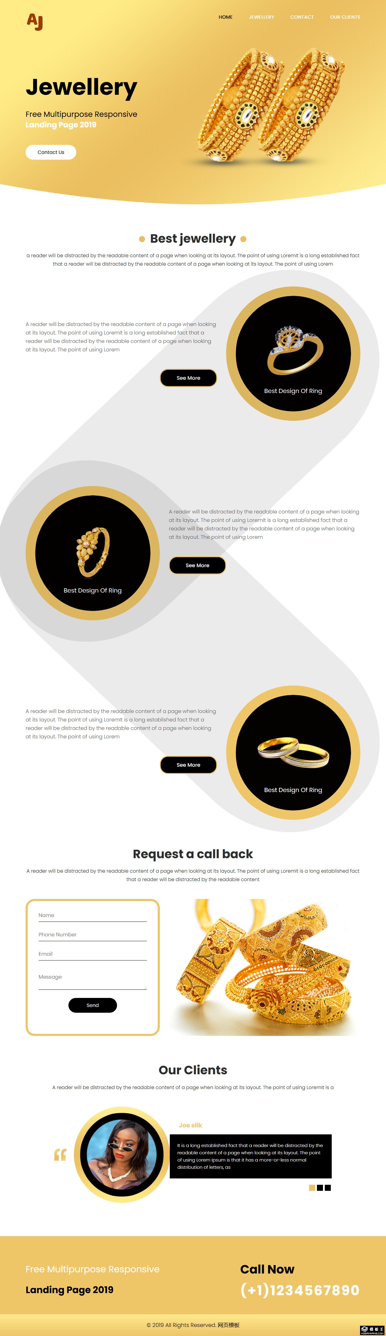 时尚黄金首饰网页模板。