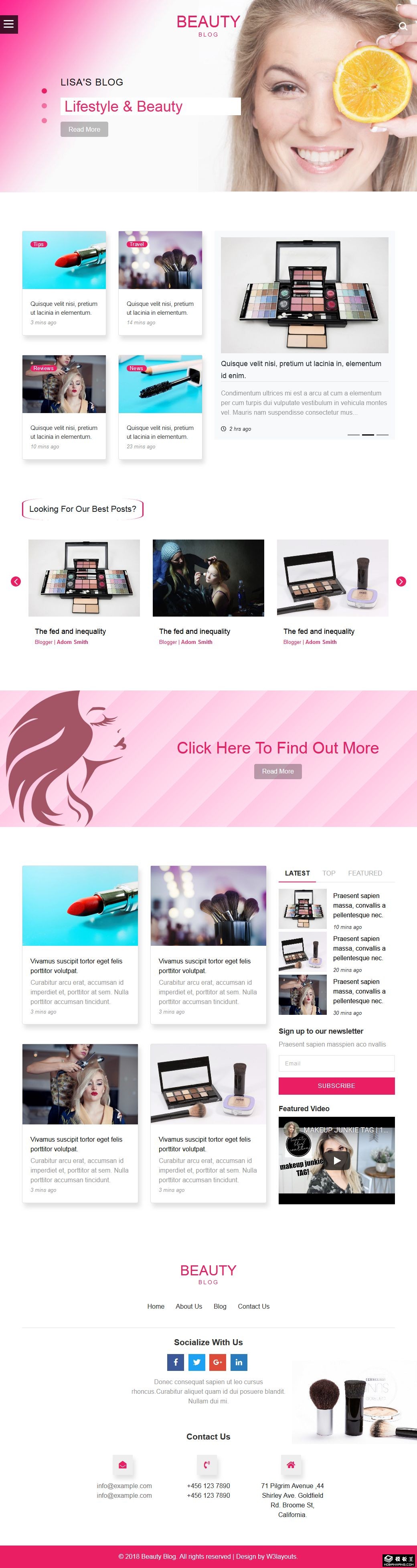 美容产品日志响应式网页模板。