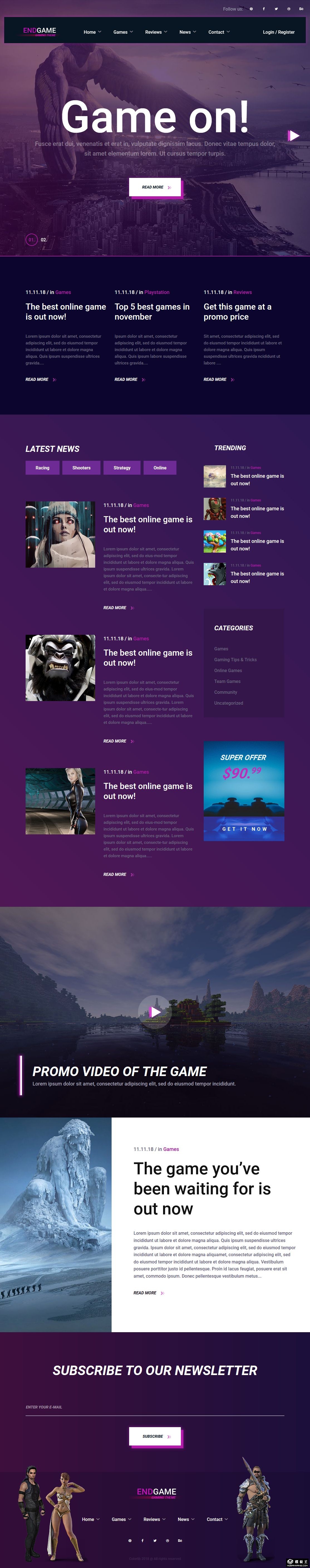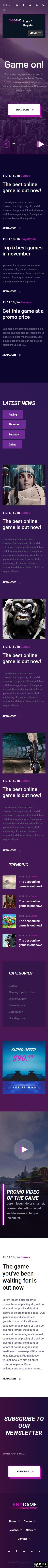 紫色游戏动态推荐响应式网页模板。