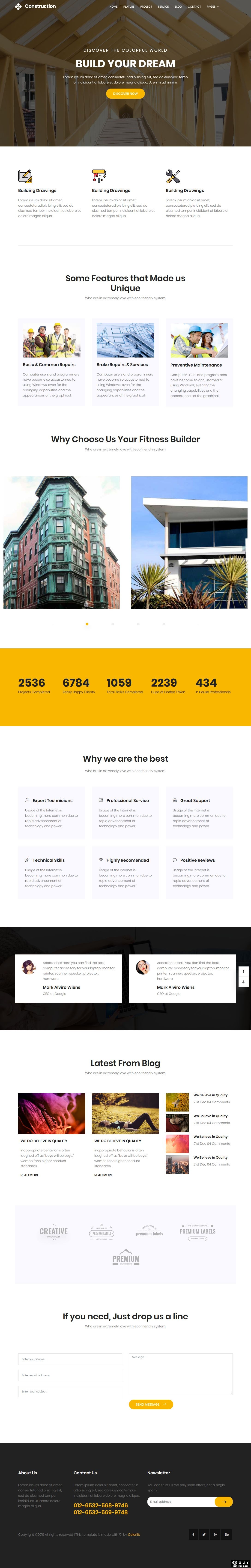 建筑建设展示动态响应式网页模板。