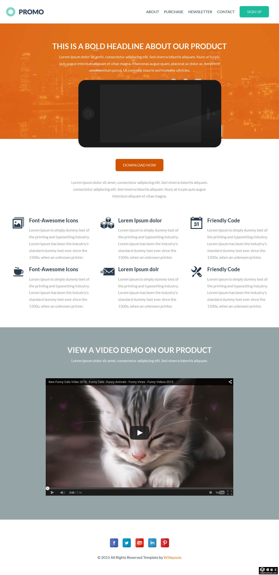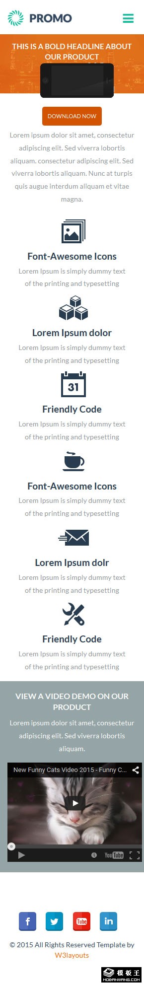 产品文字视频介绍响应式网页模板。