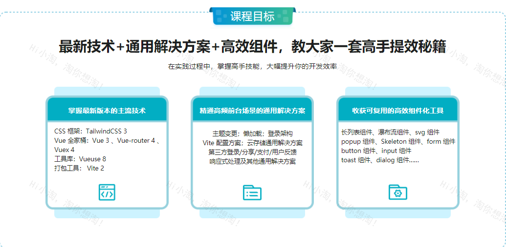 本章中,将会对课程的内容做介绍说明,总览课程中涉及到的知识点和学习方向。(关于课程选型,为什么没有使用TS,在章节介绍的锚点中有说明哦,可以查看下。项目访问也可以关注下锚点~)