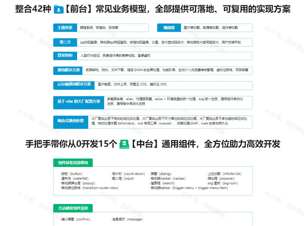 写了那么多低效的前台项目,如何高效开发,避免无谓加班?本课程通过带你学习42 种前台常见业务模型的构建原理、15 种中台通用组件与一身的通用型项目,为你之后遇到每一个前台功能提供可操作的实现方案与物料库。掌握这些,前端开发事半功倍真的不是梦!