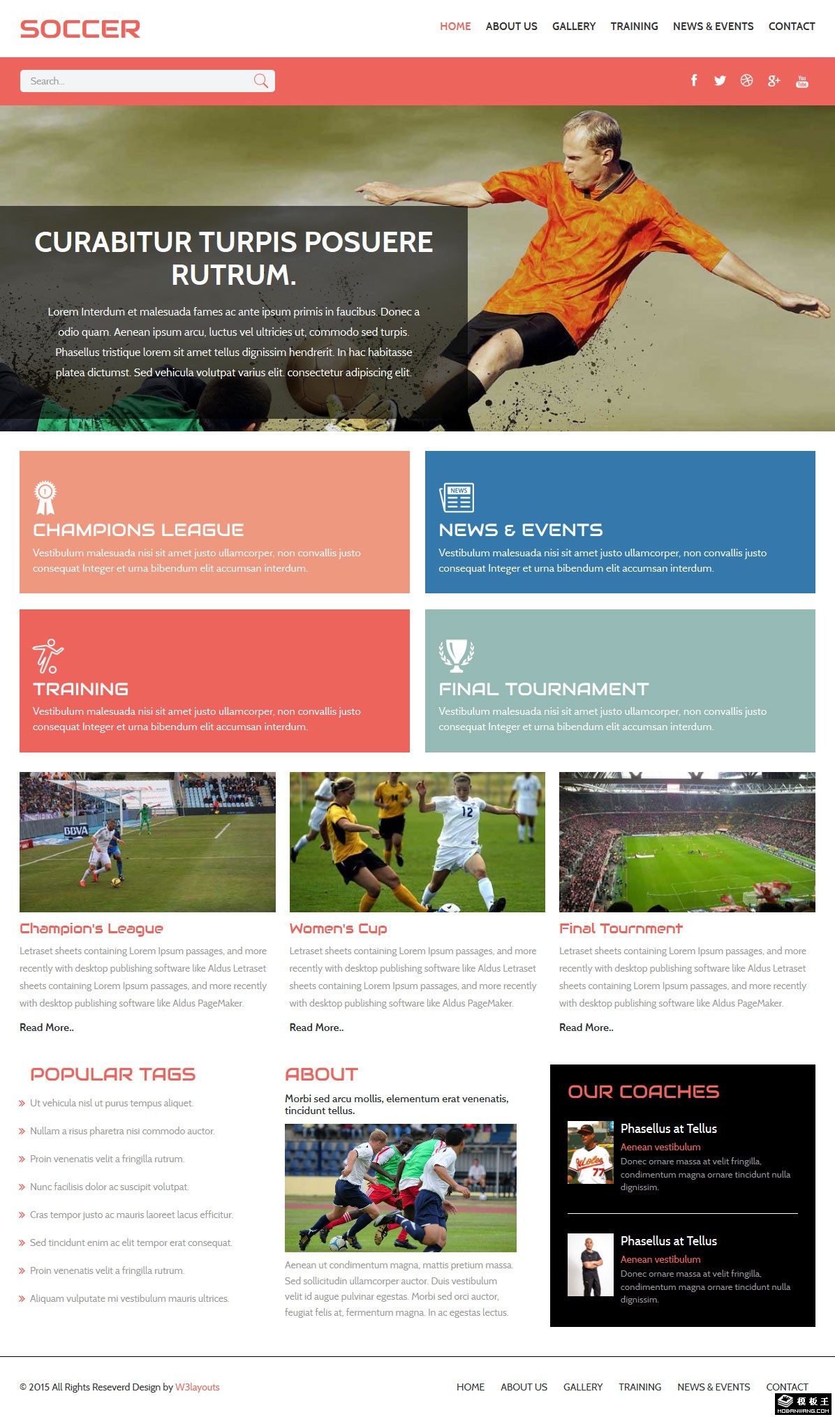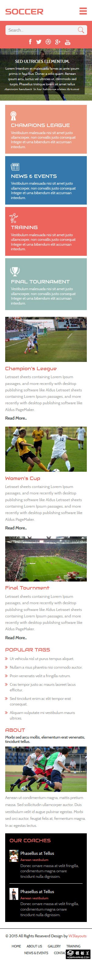 精彩足球比赛响应式网页模板。