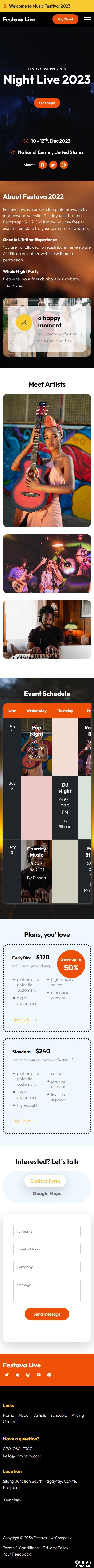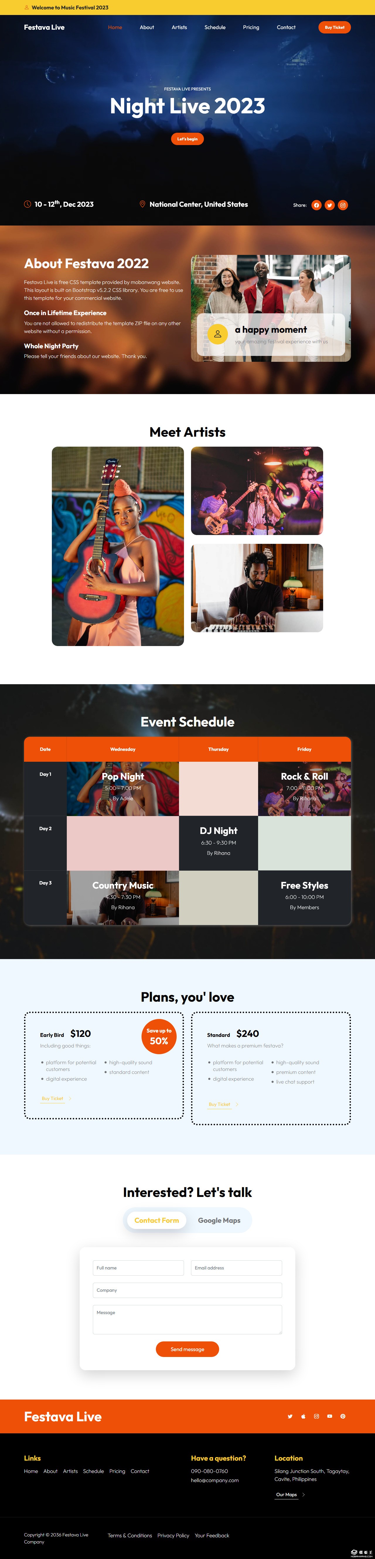 现场音乐表演活动网页模板。