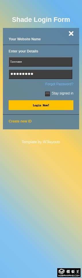 渐变蓝色登录表单网页模板。
