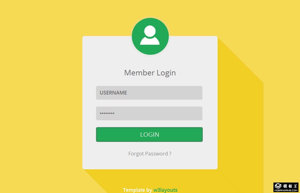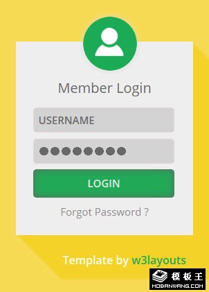 黄色用户登录框网页模板。