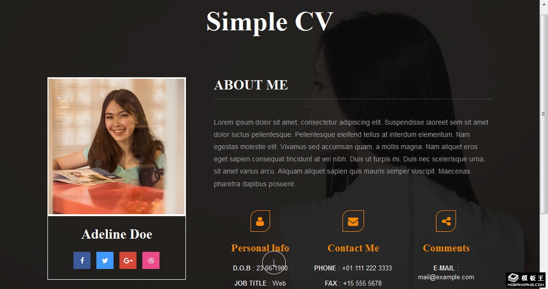 上下屏幕切换简历响应式网站模板。