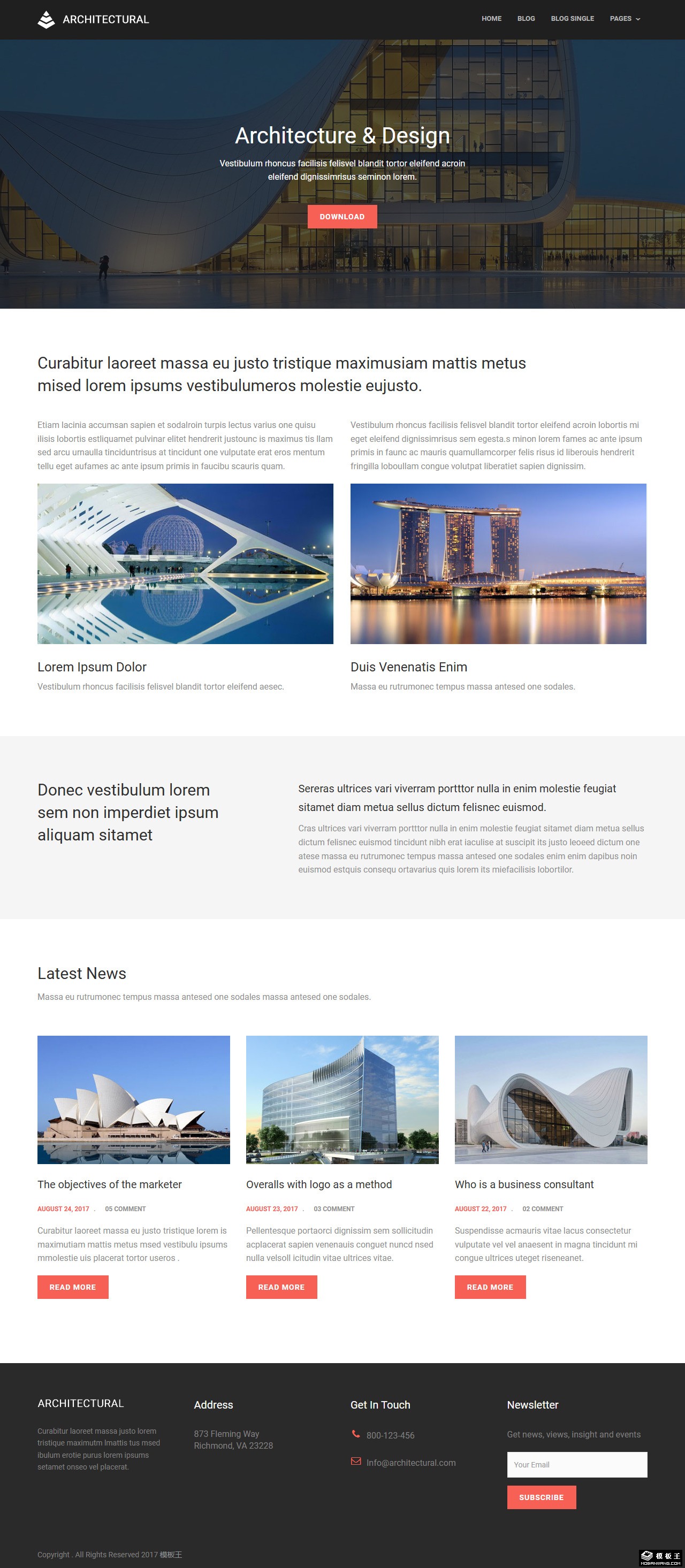 建筑设计效果展示网页模板。