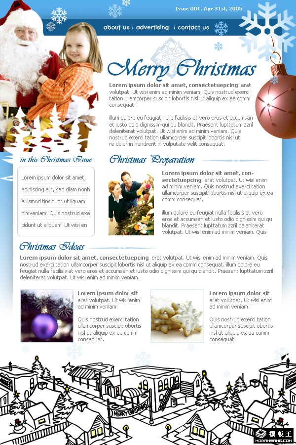 蓝色圣诞快乐邮件网页模板。