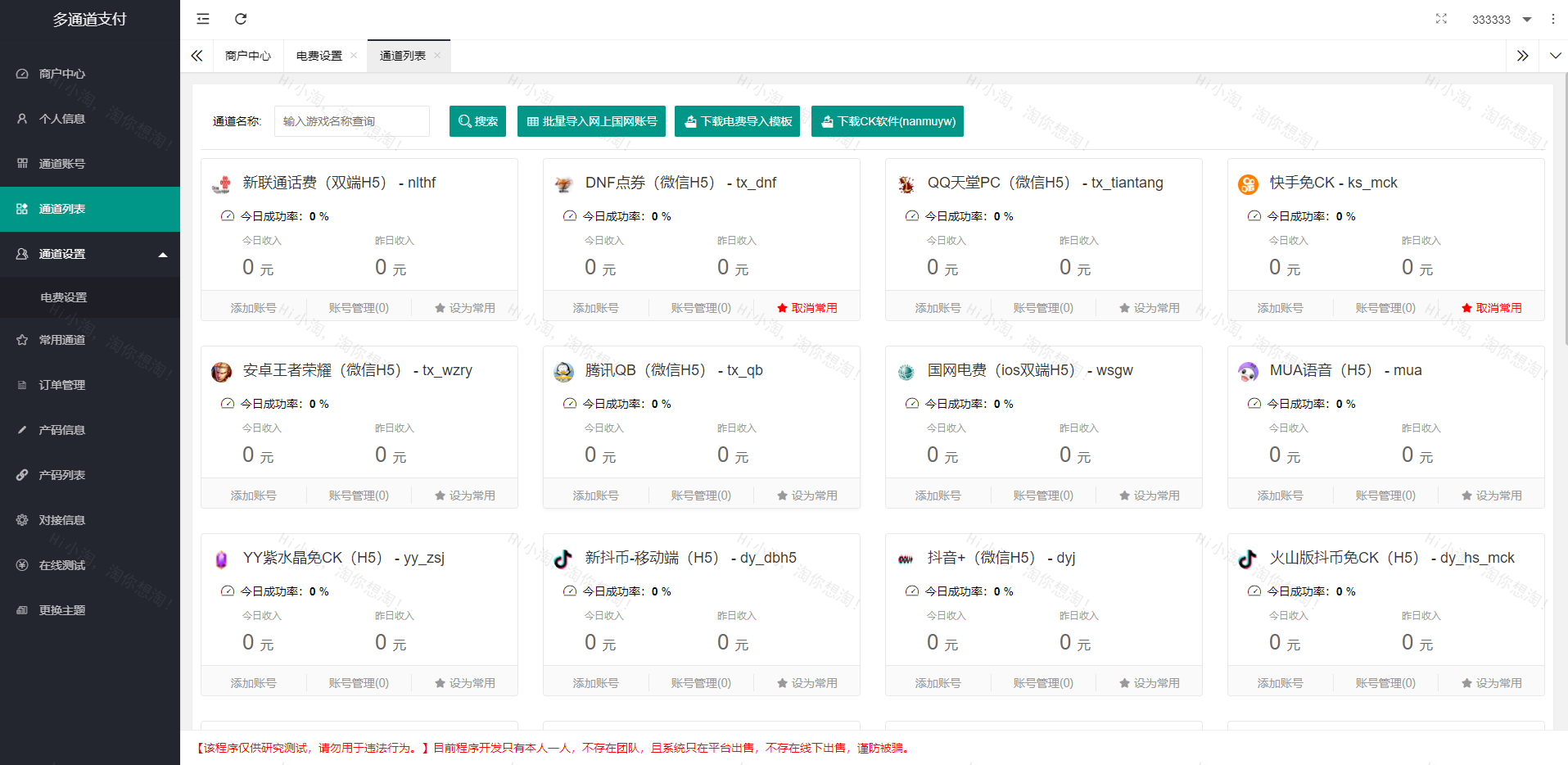 2021-11-16新增快手免CK通道修复快手H5和扫码通道修复YY紫水晶免CK通道(双端)更新YY币微信H5通道更新联通话费通道