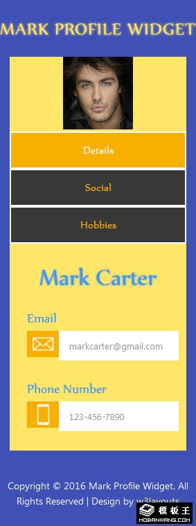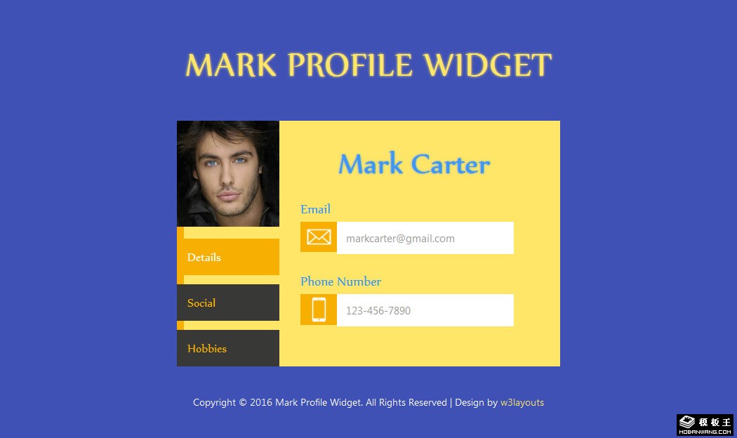 个人资料选项卡切换响应式网页模板。