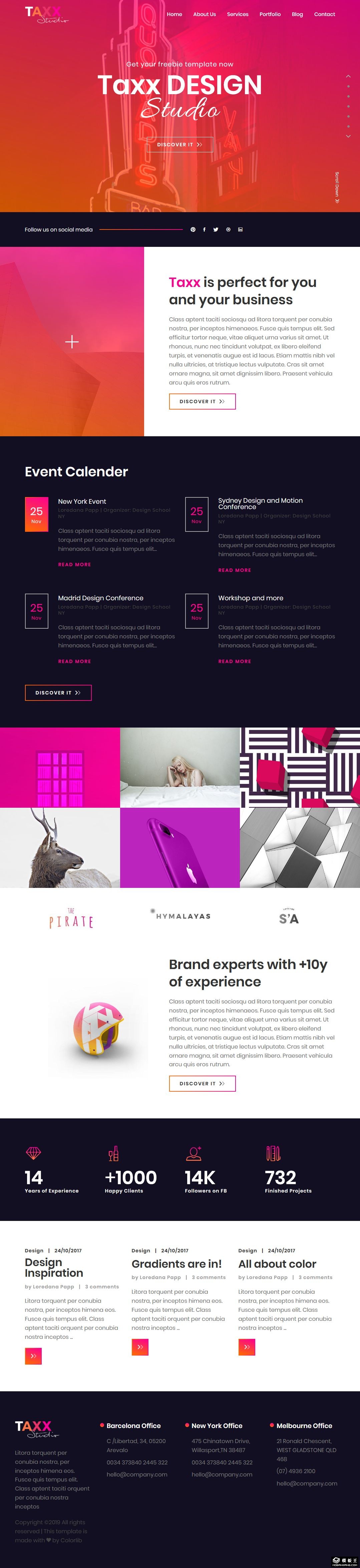创意工作室展示动态响应式网站模板。