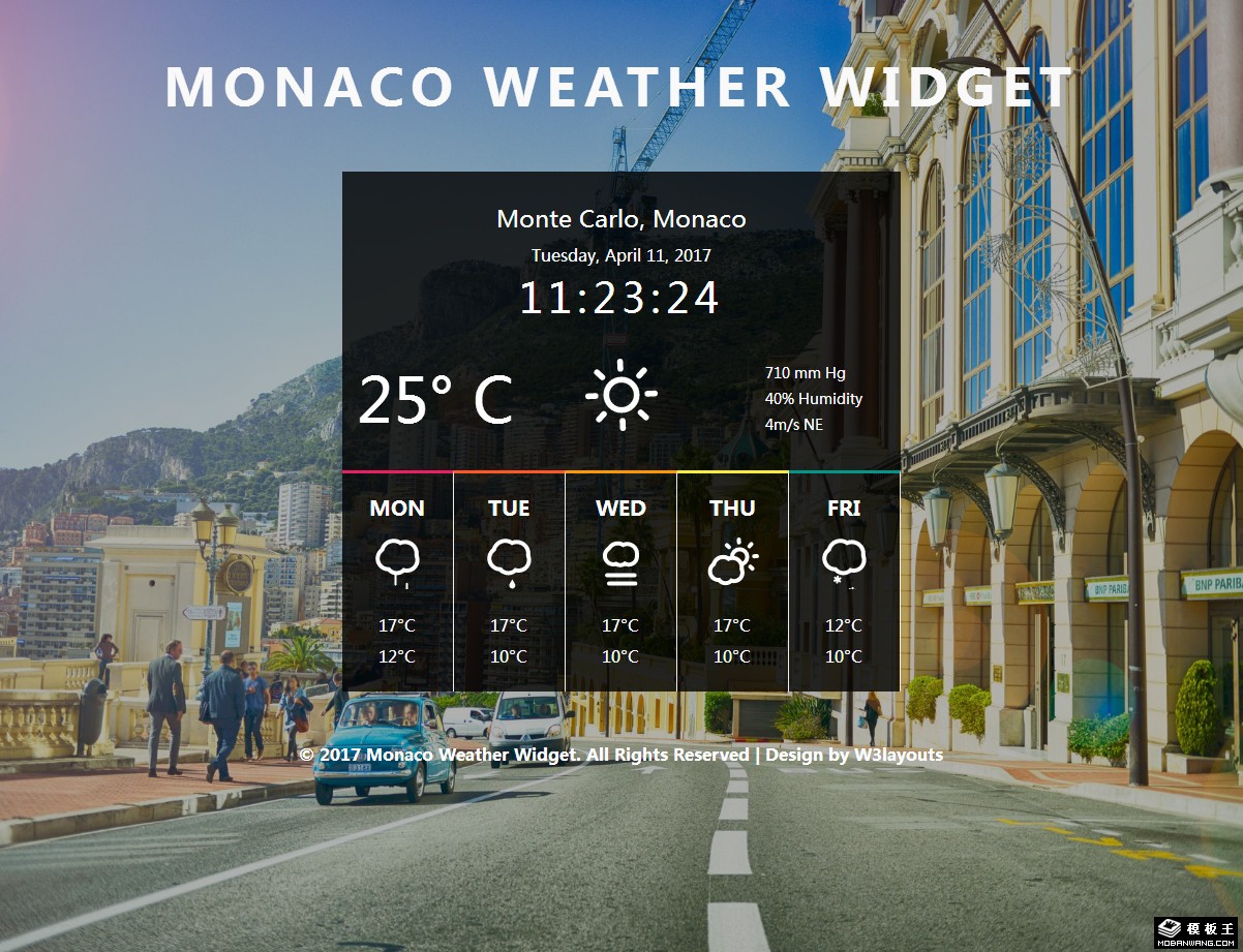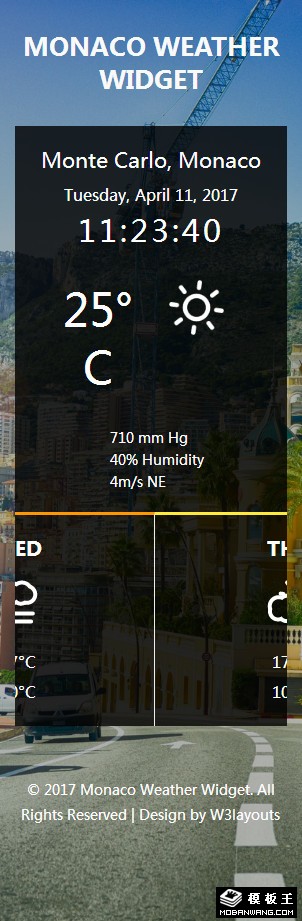 摩纳哥天气预报组件响应式网页模板。