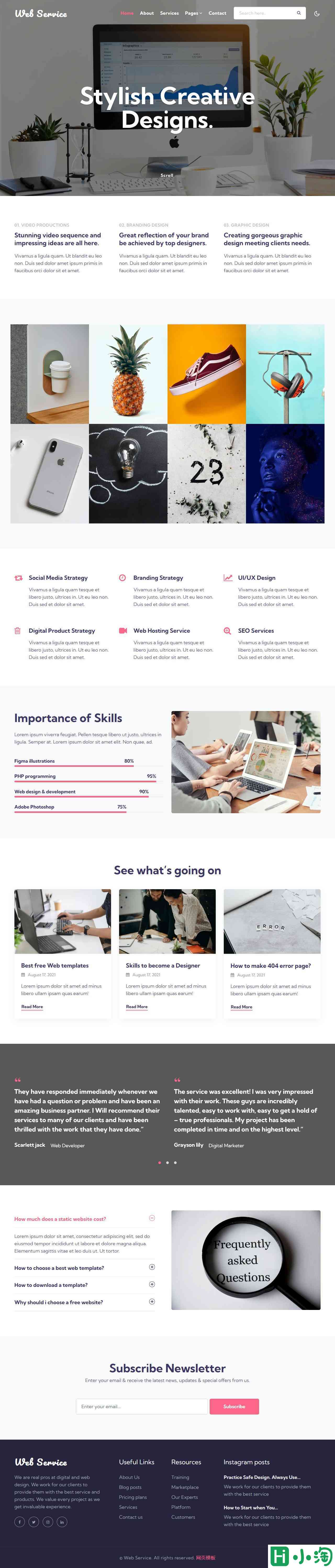 简约时尚大气的Web服务网站,该模板旨在为网站设计网站营销解决方案的企业展示业务动态而制作,通过深色模式和浅色模式切换,Web服务可确保始终获得无缝舒适的浏览体验。