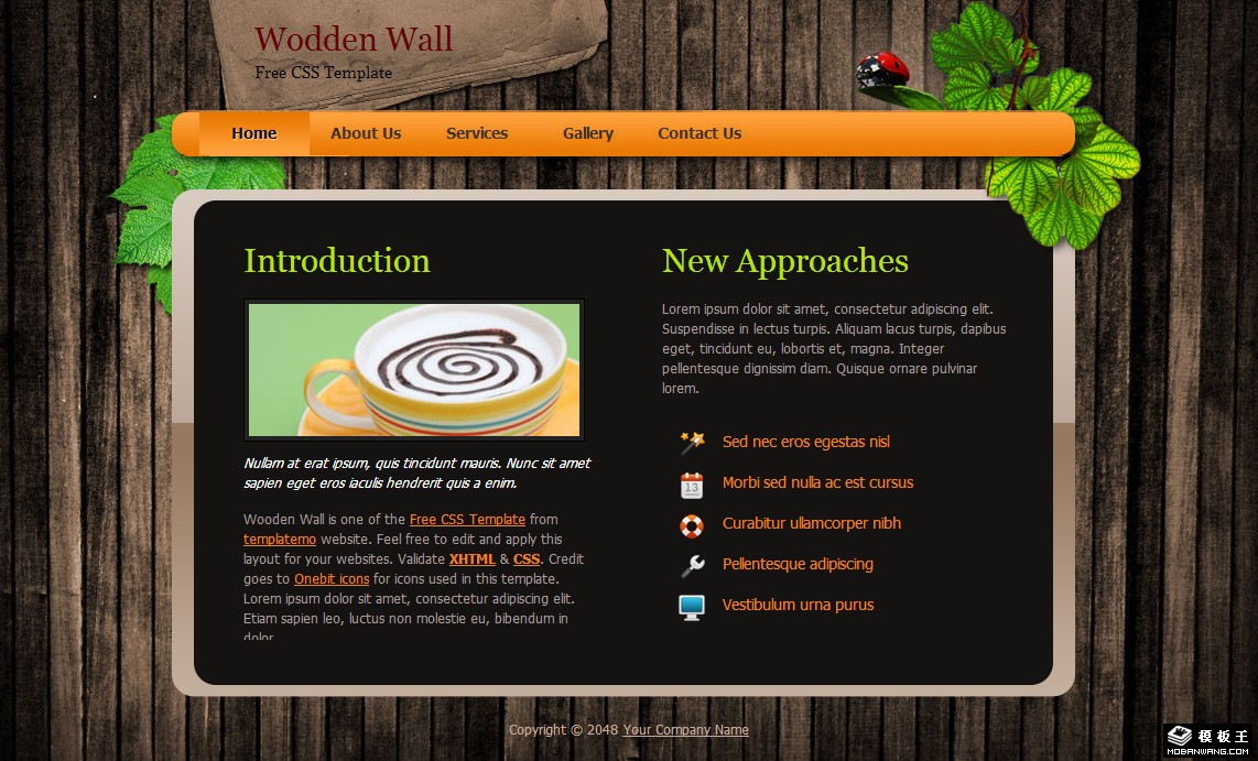 木墙面板展示网页模板。