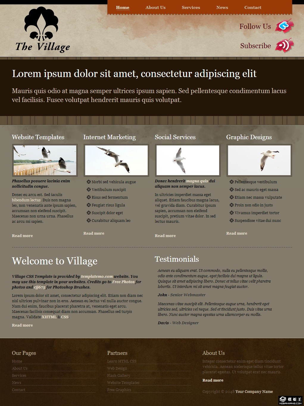 灰棕村庄信息网页模板。