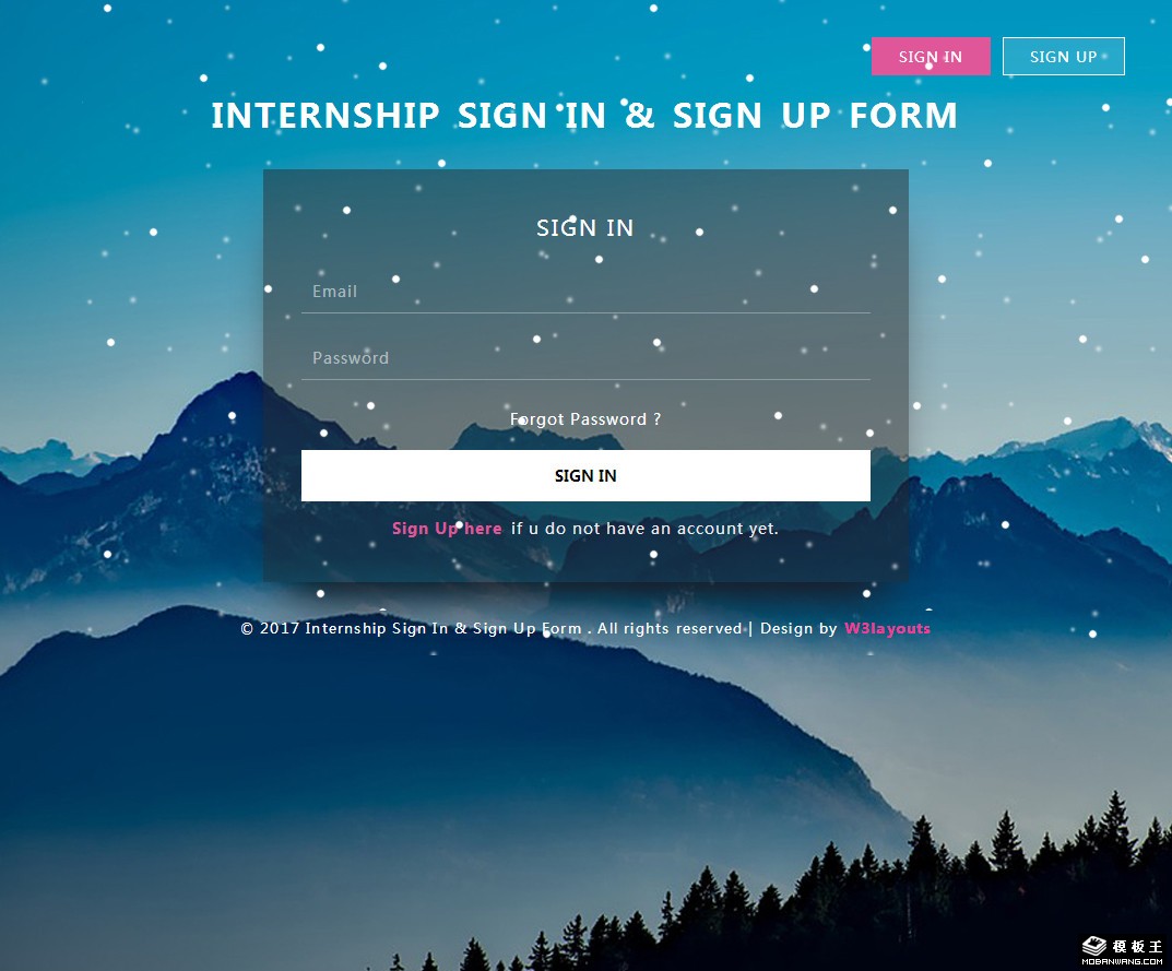 高山雪花登录注册框响应式网页模板。