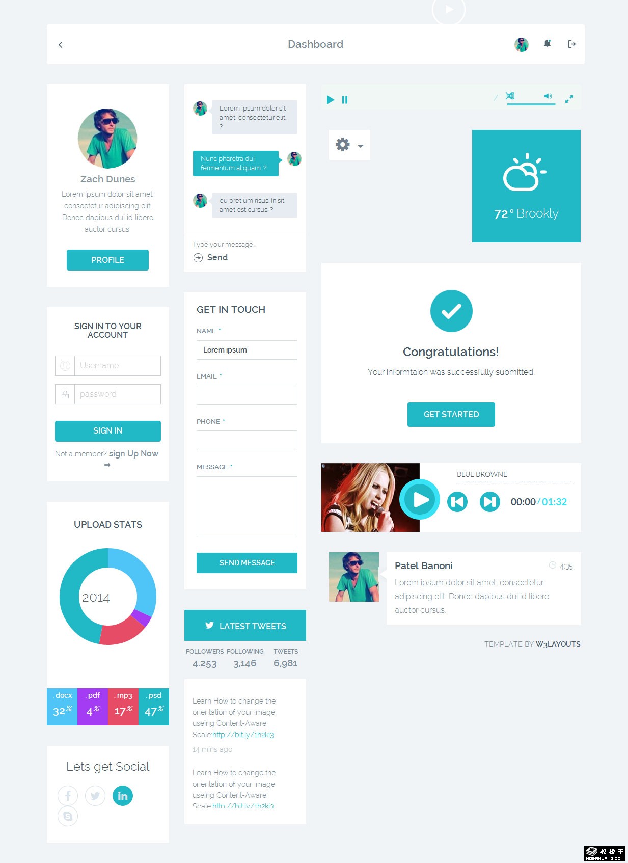 青色扁平uikit组件网页模板。