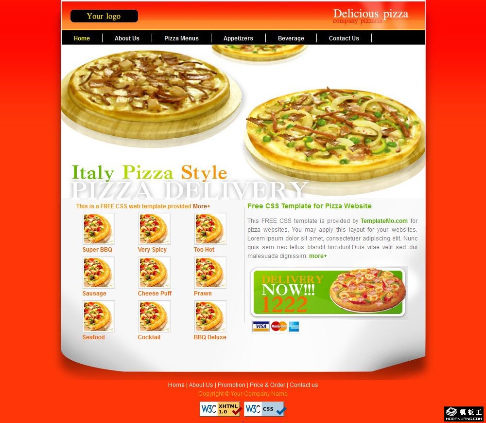 Pizza美食餐厅网页模板。