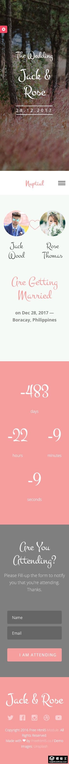 婚礼信息展示响应式网站模板。